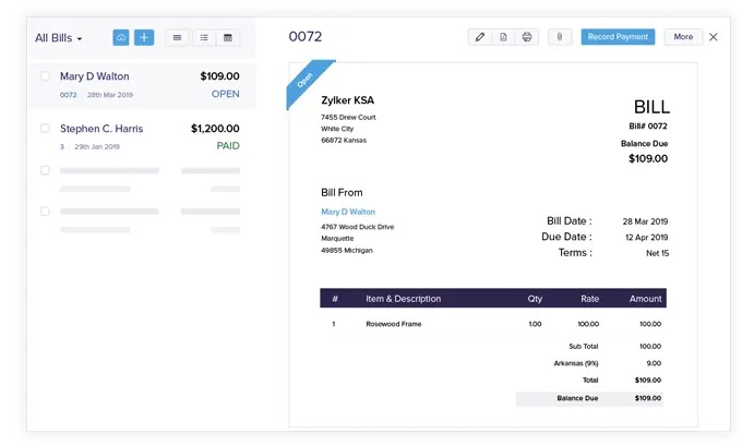 掌握您的应付账款并了解您的资金去向。从供应商账单到费用,Zoho Books 使管理应付账款变得容易。