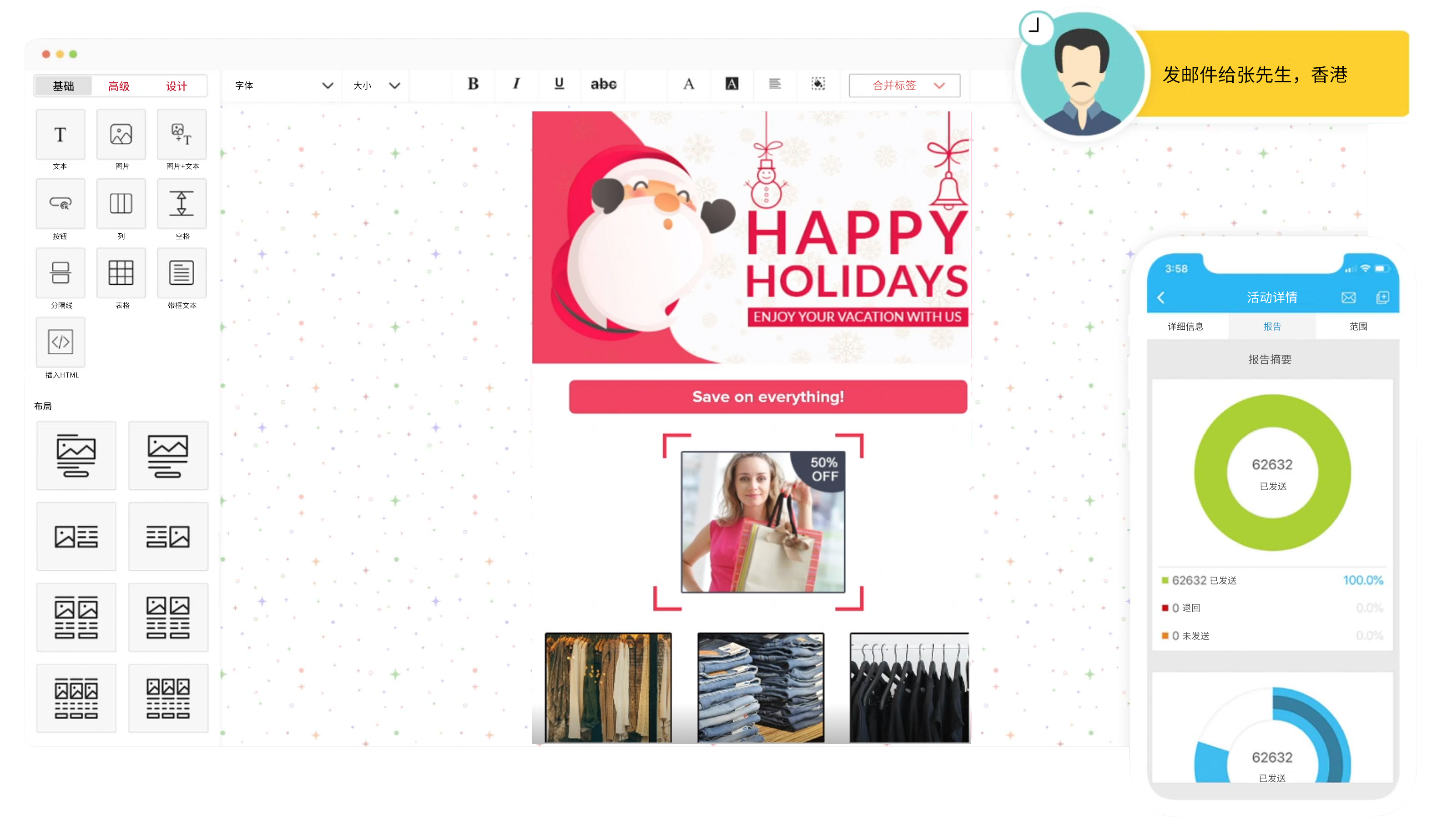 不断测试和改进直至成功。富有洞察力的数据报告提供有关电子邮件营销活动绩效的广泛信息,例如网络打开量、点击量和分享量。
