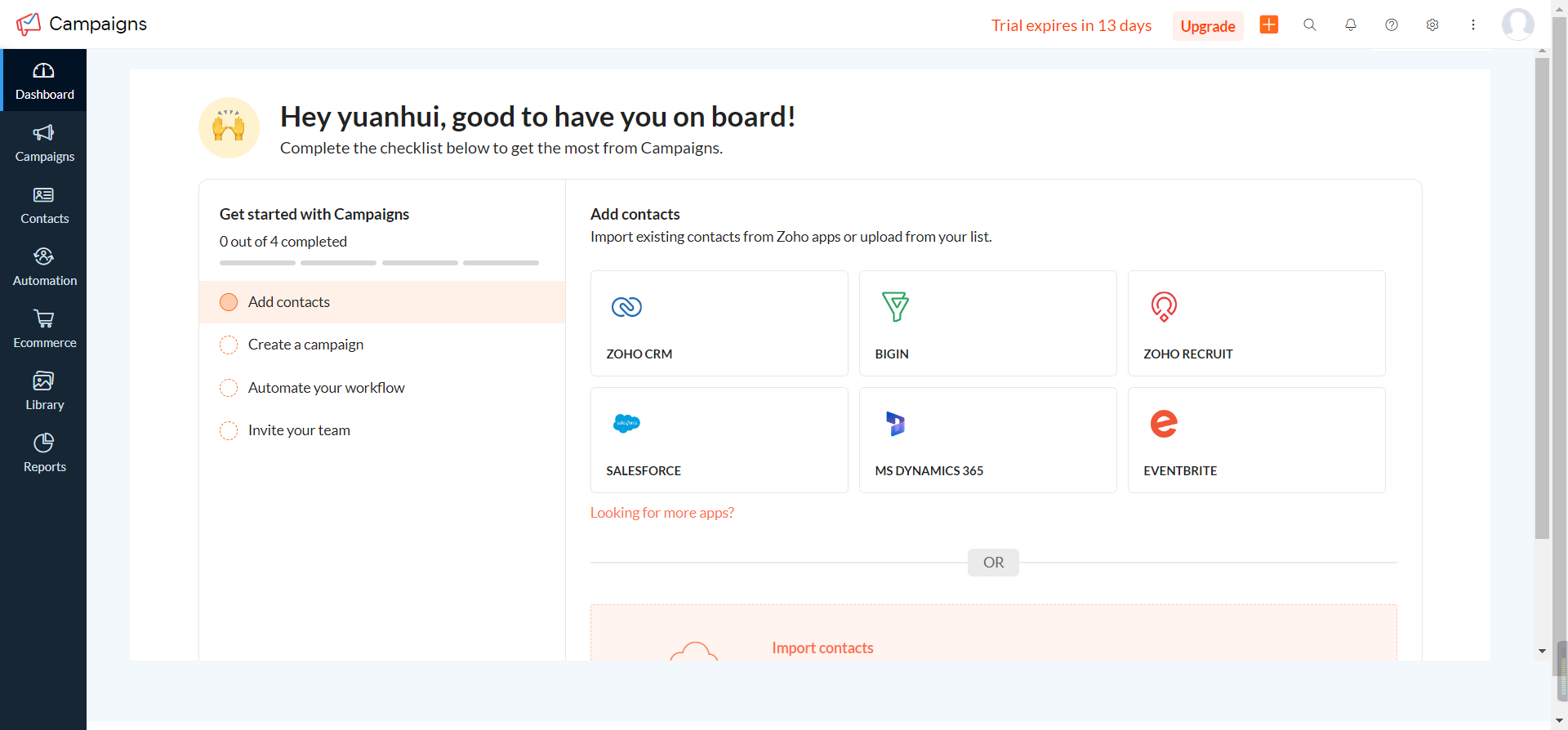 如果联系信息存储在 Zoho CRM 中,您可以将账户与 Zoho Campaigns 同步、发送电子邮件并在 CRM 账户内检查结果以进行简单的后续操作。