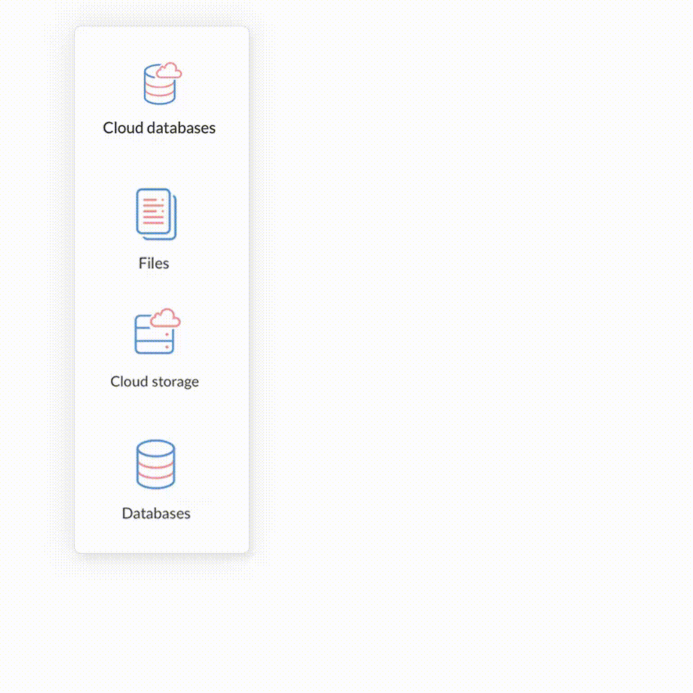 连接到广泛的源,包括文件、源、数据库、数据仓库、REST API 等。使用内置连接器从 Zoho Analytics 和 Zoho CRM 导入数据。