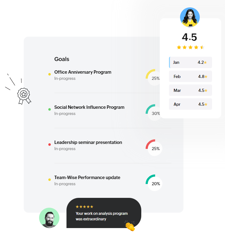 Zoho People发展和扩大公司的人才库。了解每个团队成员的能力和潜力、他们所拥有的才能以及如何提高组织绩效。实现灵活的绩效体系搭建,以满足不同岗位考核需要。