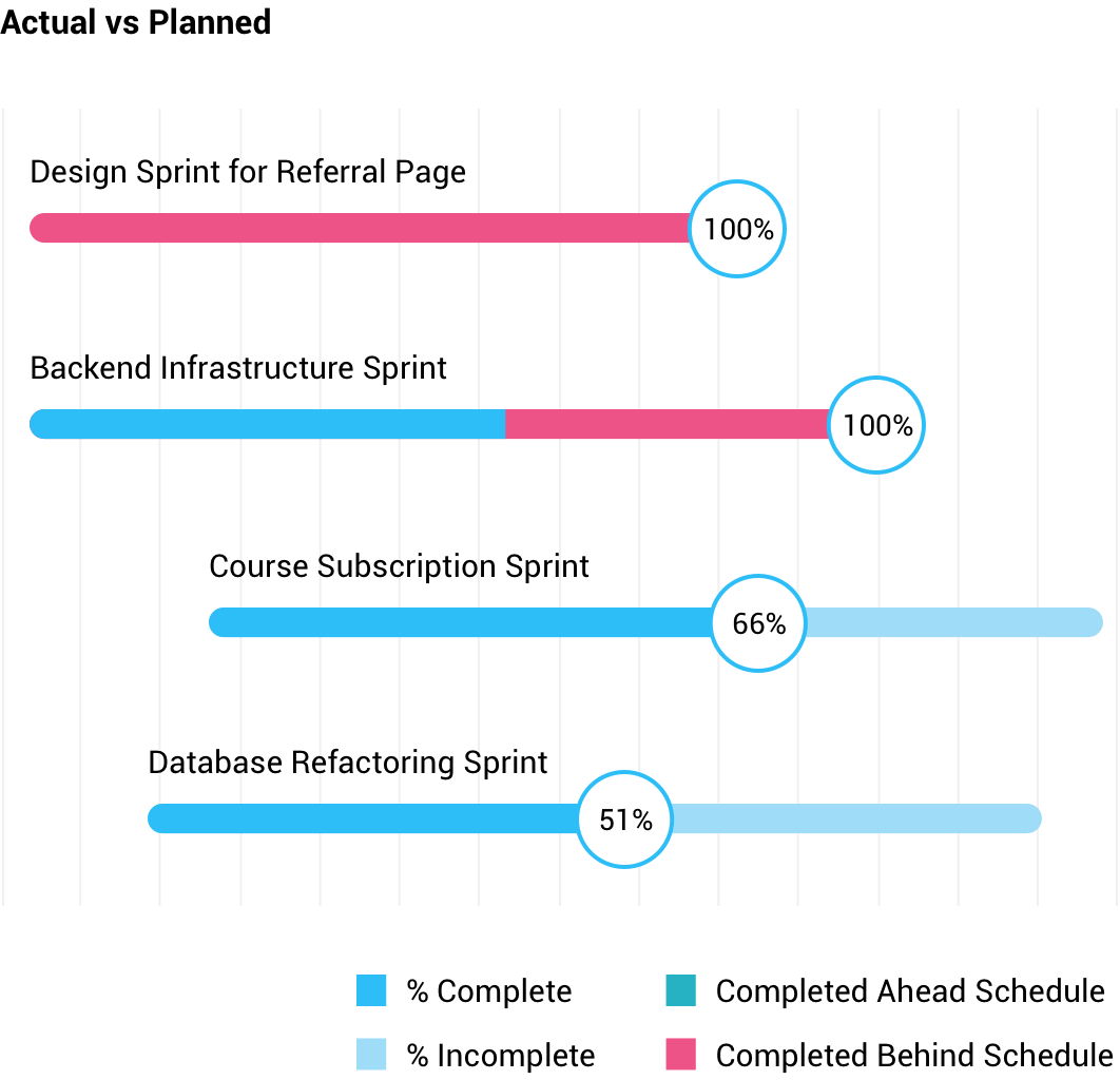 跟踪您的发布时间表并全面了解您的进度。比较原始冲刺时间范围和实际冲刺时间范围,根据平均速度得出预测时间范围。